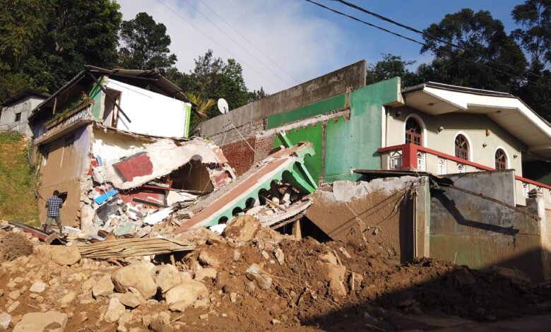 இலங்கையின் புவியியல் அமைப்பானது மாவட்டத்திற்கு மாவட்டம் மாறுபட்டுக் காணப்படுவதால், காலநிலை மாற்றத்தின் விளைவுகளும் அந்தந்தப் பிரதேசங்களின் நில அமைப்பு மற்றும் வாழ்வாதாரங்களுக்கு ஏற்ப வெவ்வேறு வடிவங்களில் வெளிப்படுகின்றன. குறிப்பாக, மத்திய மலைநாட்டின் பதுளை, நுவரெலியா, இரத்தினபுரி மற்றும் கேகாலை போன்ற மாவட்டங்கள் கடந்த சில தசாப்தங்களாக முன்னெப்போதும் இல்லாத வகையில் மண்சரிவு அபாயத்தை எதிர்கொண்டுள்ளன. இலங்கையின் அனர்த்த முகாமைத்துவத் தரவுகளின்படி, மண்சரிவு அபாய வலயங்கள் கடந்த பத்தாண்டுகளில் சுமார் 22 மடங்காக அதிகரித்துள்ளமை ஒரு பாரிய அச்சுறுத்தலாகும். நுவரெலியா போன்ற மாவட்டங்களில் நிலவும் இழிவு வெப்பநிலை அதிகரிப்பதனால் தேயிலைப் பயிர்ச்செய்கை பாதிக்கப்படுவதுடன், திடீர் அதிசெறிவான மழைவீழ்ச்சி காரணமாக ஏற்படும் நிலச்சரிவுகள் பெருந்தோட்டத் தொழிலாளர்களின் குடியிருப்புகளை முற்றாகச் சிதைக்கின்றன. இந்த அனர்த்தங்களால் இடம்பெயரும் மக்களுக்குப் புதிய நிலங்களை வழங்குவதற்கும், உட்கட்டமைப்புகளைச் சீரமைப்பதற்கும் அரசாங்கம் மீண்டும் மீண்டும் கடன்களைப் பெற வேண்டியுள்ளமை ஒரு நச்சுச் சுழற்சியாக மாறியுள்ளது.