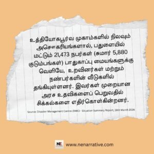 இலங்கையில் ‘டிட்வா’ (Ditwah) அனர்த்தத்திற்குப் பின்னரான தற்போதைய களச்சூழல், அனர்த்த முகாமைத்துவம் என்பது வெறும் தொழில்நுட்ப ரீதியான முன்கூட்டிய எச்சரிக்கைகளுடன் மட்டும் முடிந்துவிடுவதில்லை என்பதைத் துல்லியமாக உணர்த்தியுள்ளது. இக்கட்டுரையில் ஆராயப்பட்ட தரவுகளின் அடிப்படையில், அனர்த்த முகாமைத்துவத்தில் ‘கட்டமைப்புச் சிதைவு’ (Structural Failure) என்பது வெறும் கட்டிடங்களின் உடைவு அல்லது நிலச்சரிவு சார்ந்தது மட்டுமல்ல; அது இடம்பெயர்ந்த மக்களுக்கான சமூகப் பாதுகாப்பு வலைப்பின்னலில் (Social Protection Safety Net) ஏற்பட்டுள்ள பாரிய ஓட்டைகளையும் உள்ளடக்கியதாகும்.