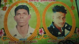 ”..கடலில் என்ன நடந்ததென்று நானறியேல்ல. அவரோட போன மற்ற ஆக்களின்ர படகுகள் எல்லாம் திரும்பி வந்திற்று. அவரின்ர வலைகள் மட்டும் கிடைச்சது. வலைகள் குறுக்க மறுக்க நாலைஞ்சு இடத்தில வெட்டுப்பட்டிருந்தது. அண்ணாவுக்கு இவரின்ர வலைகளின்ர ”கலர்” (நிறம்) தெரியும். பிறகொரு நாள் கடலுக்குப் போகும்போது கடலில் கிடந்து எடுத்துவந்தவர். இப்பவும் அந்த வெட்டின வலைகள அவரின்ர ஞாபகார்த்தமா வைச்சிருக்கிறன். வலை வெட்டுப்பட்டதுதான் சந்தேகமாக இருக்கு. அந்தக் காலப் பகுதியில இந்தியாவின்ர படகுகள் இங்கால வாறது, எங்கட ஆக்களின்ர படகுகள, வலைகள வெட்டுறது, அறுக்கிறதெல்லாம் நடந்தது. அப்பிடி ஏதும் நடந்திருக்குமோ என்றுதான் ஊகமாக இருக்கு…”